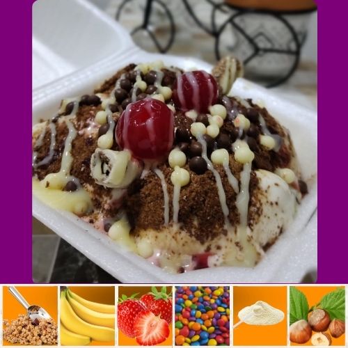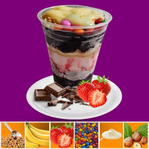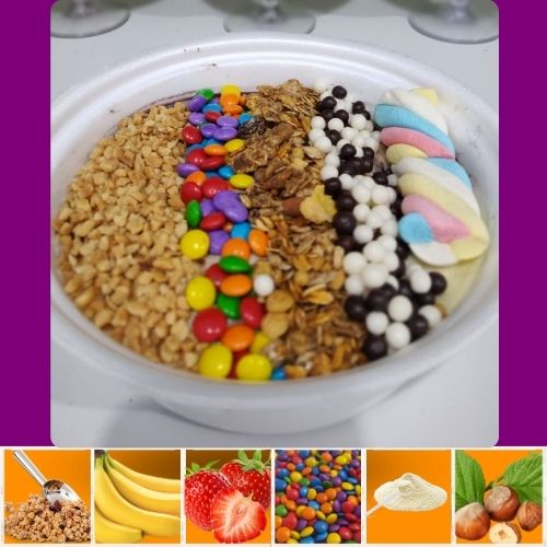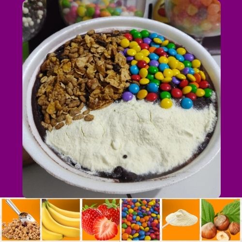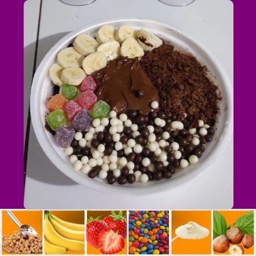 Acompanha 2 opções de sabores entre Açaí ou Creme, 1 opção de cobertura e 2 opções de guloseimas.