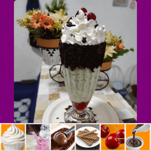 500ml + o sabor de sua preferência, chantininho, cereja e borda de nutella.
