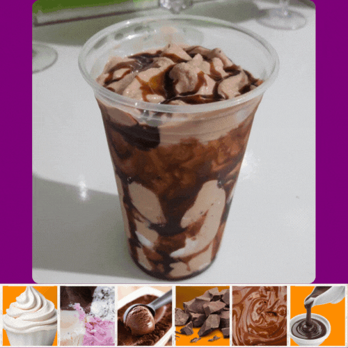 Acompanha 4 opções de sabores entre Açaí ou Creme, 1 opção de cobertura e 3 opções de guloseimas.